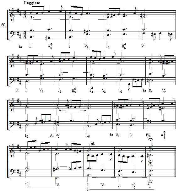 第1章の課題です。内音の課題であっても、分散和音というよ りも複数の音の動きが耳で追えるように作られていることがわ かります。 旋律と言う物は、音を運動として捉えた結果なのでしょう。ど の曲も順次進行が基本になっています。小節線を越えた旋律の 基本線が大きな流れを作っていると観測できると思います。 経過音の課題は2つ載せています。片方は設定された和音にお ける3度の間を動くだけですが、他方は大きな分散線を繋ぐた めに、経過和音が設定されている事が思います。 [ http://www.tnet.to/filer/156/01_06.mid 6.55KBytes (6708Bytes) ]